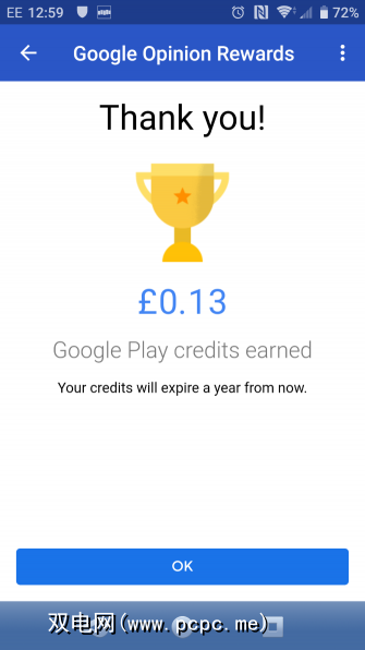 调查大约需要10秒钟才能完成,通常最终会在您的帐户中添加几美分。在几周的时间内,您可以获得足够的信用额度,可以在Play商店中消费。