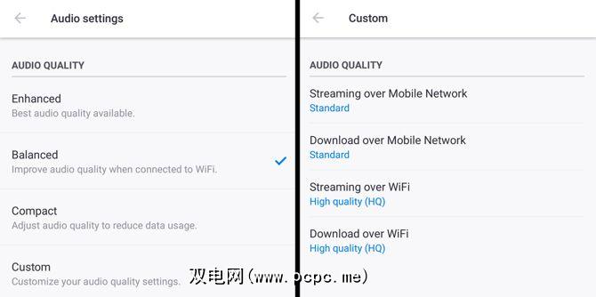 在iOS和Android应用中,您还可以选择下载的质量来自Spotify的音乐。它被标记为“同步质量",它再次具有“正常",“高"或“极限"质量。