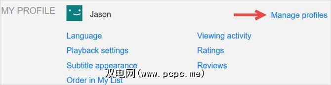 向下滚动到我的个人资料部分,然后点击管理个人资料。您还可以通过单击个人资料旁边的箭头(如上所述)并选择管理个人资料来快速跳至该区域。
