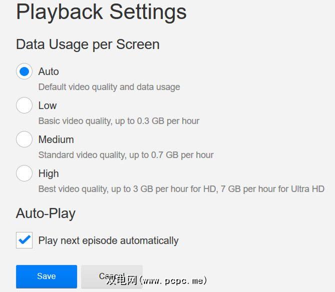 出于质量和方便的考虑,您可以调整每屏数据使用量和自动播放选项。向下滚动到我的个人资料部分,然后点击播放设置。然后,您可以从默认视频质量,低质量,中质量或高质量中选择。该默认设置可能是使用Netflix的烦人事情之一。
