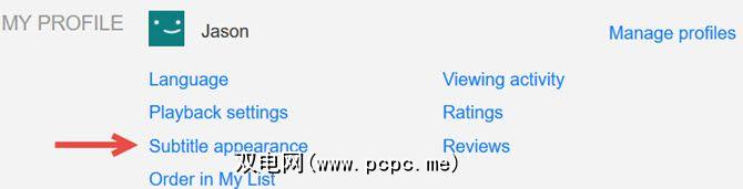 如果您喜欢用字幕观看另一种语言的Netflix,则可以完全自定义其外观。向下滚动到我的个人资料部分,然后单击字幕外观。