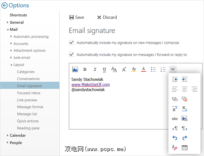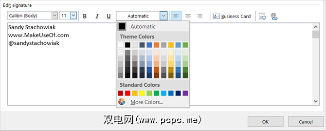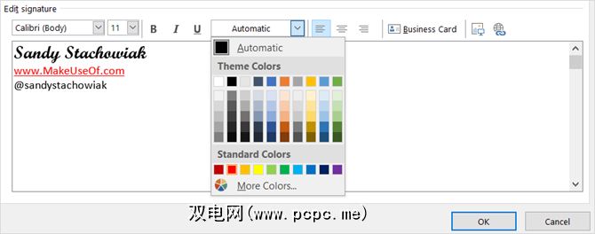 在Outlook桌面中创建签名的一个不错的功能是,如果要添加到网站的链接,应用程序会自动为您完成操作。例如,如果您先输入“ www。",然后再输入URL的其余部分,则当您按 Enter 键时,文本将为您链接到该站点。