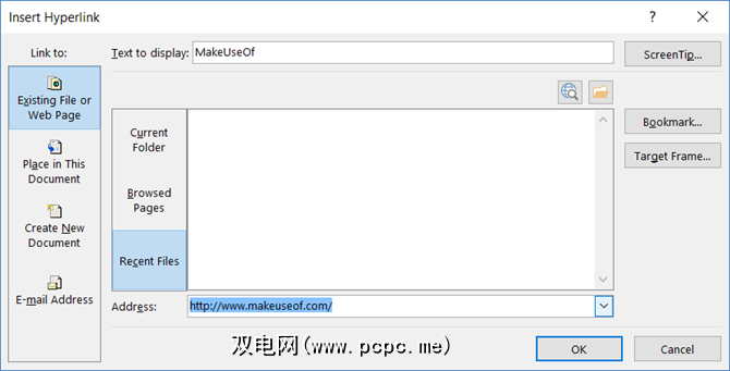 为此,请选择文本,然后单击超链接按钮,编辑器的顶部。确保在链接到下,选择现有文件或网页,确认要显示在顶部的文本,然后在底部的中输入URL。 >地址字段。单击确定,设置完成。