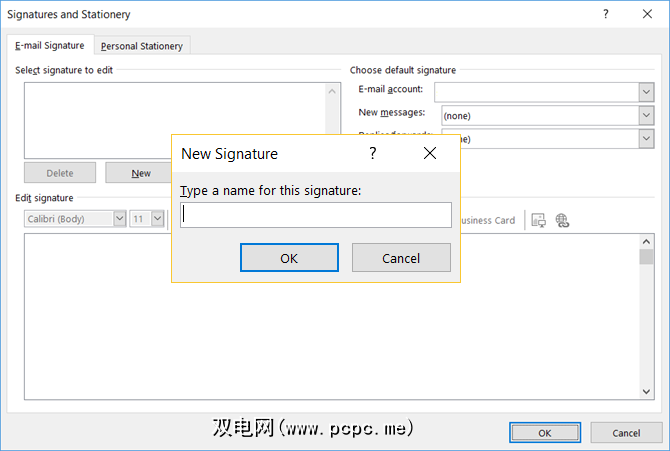 接下来,您将需要给您的签名命名。如果您打算设置多个签名,这很方便,这一点同等重要。例如,您可以选择对新邮件和答复或办公室内和办公室外邮件使用不同的签名。因此,尝试使用一眼就能识别的有意义的名称。