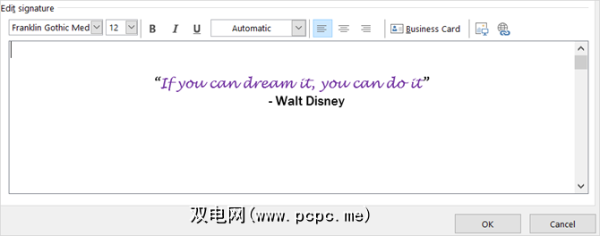 用引号括住动机,灵感或良好的旧幽默。您可以使用Outlook中的格式化工具使任何单词看起来花哨或有趣。