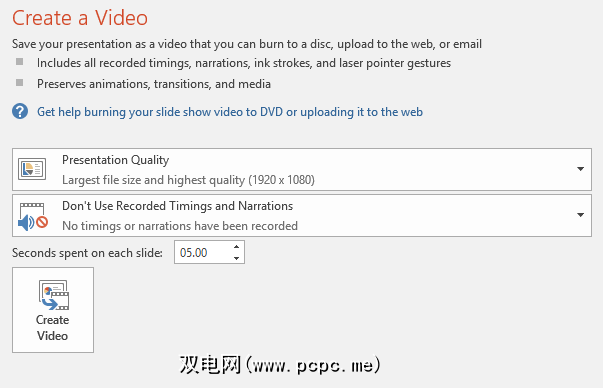 您会发现PowerPoint易于使用,但具有足够的个性化选项,可以使幻灯片显示更加有趣。另一个好处是轻松导出功能。转到文件>导出>创建视频,然后选择您的选项。然后,您可以共享幻灯片的视频,或上传到首选的社交媒体平台。