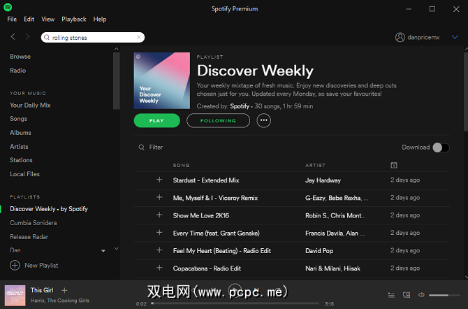 例如,如果您在其中保存了很多滚石乐队的歌曲您的音乐,还有一个“六十年代摇滚"播放列表,在很大程度上借鉴了资深摇滚歌手的音乐,您可以期望在“发现每周"播放列表中看到很多类似的乐队。