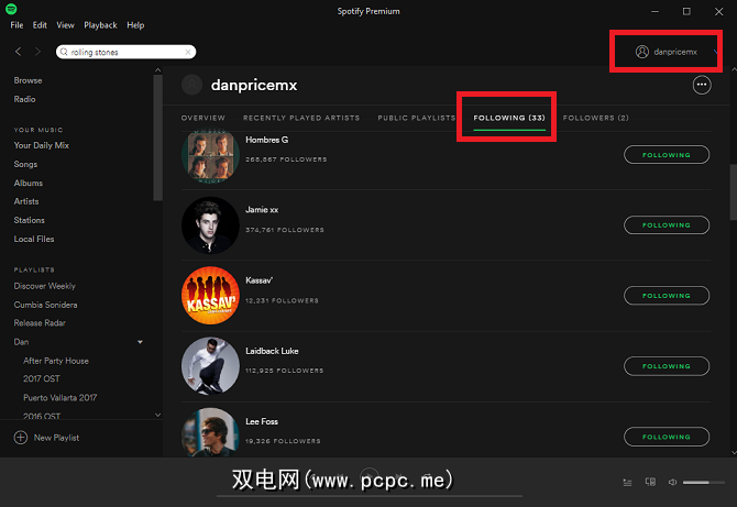 但是您关注的乐队仍然会极大地影响您的“发现每周"播放列表。如果您忽略了关注列表,请花一些时间删除不再感兴趣的艺术家,并添加想要收听更多的乐队。