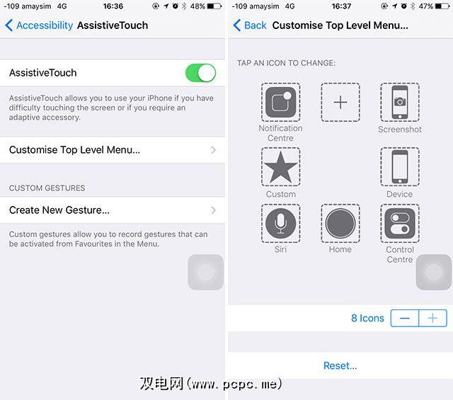 您可以添加到Assistive Touch的自定义功能包括音量控制,截图,摇动iPhone(如果您无法摇动iPhone,则可以访问“摇动撤消"),甚至是单手捏缩放控件。