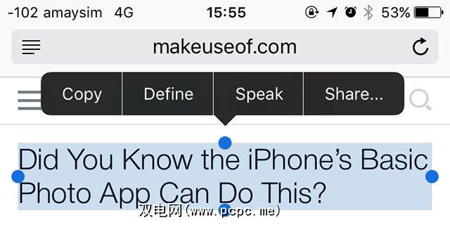 语音选择允许您可以像平常一样(双击和拖动)来选择文本,然后选择说按钮来收听突出显示的突出显示的文本-您甚至可以暂停和调整播放速度。