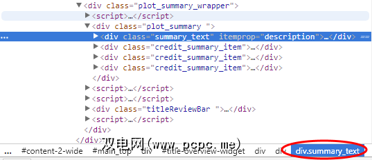 硒支持使用CSS从页面中选择元素。 (支持的CSS方言是CSS2)。例如,要从上面的IMDb页中选择摘要文本,我们将编写: