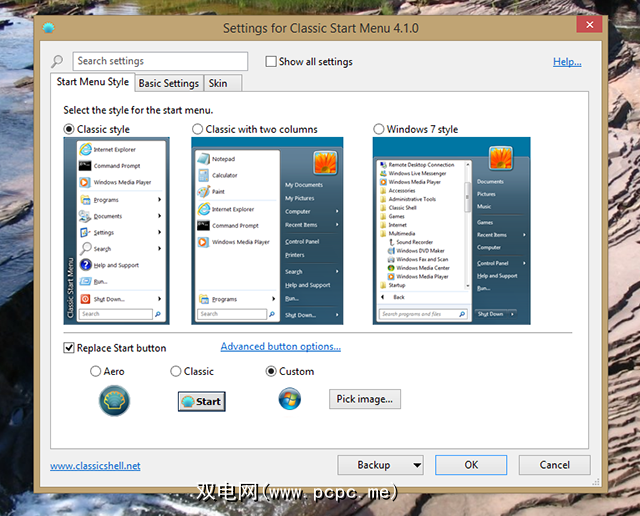 我推荐Classic Shell,正如我之前提到的那样,它为您提供了各种经典的Start菜单。您将认识到三个主要选项: