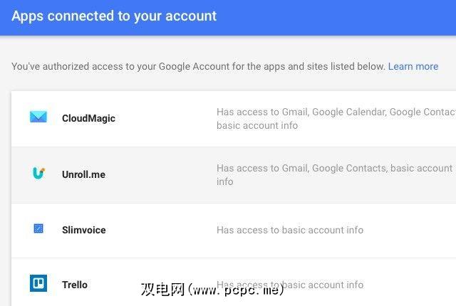 每个月左右,请检查您的Google,Facebook和Dropbox帐户(以及其他帐户)并浏览可以访问这些帐户的第三方应用程序列表。如果您发现有一段时间未使用过或显示可疑活动的应用程序,请撤销其权限。