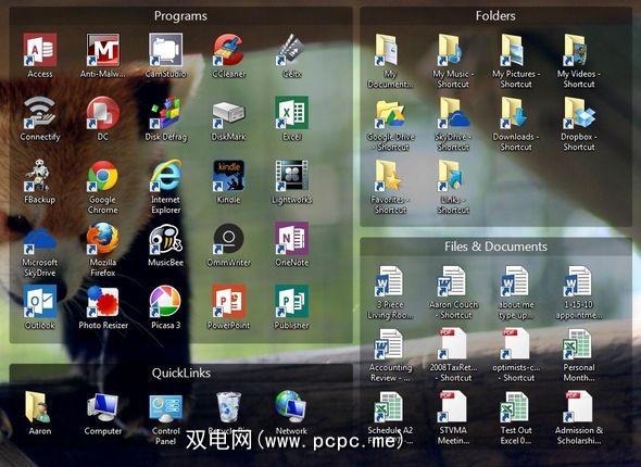Fences是可以为您完成此操作的应用程序。它通过根据类型将快捷方式组织到桌面上的群集中来工作。只需单击一下,它们都可以“消失"。这是一个非常漂亮的小应用程序,许多PCPC.me读者已经发现它对PC自定义很有用。