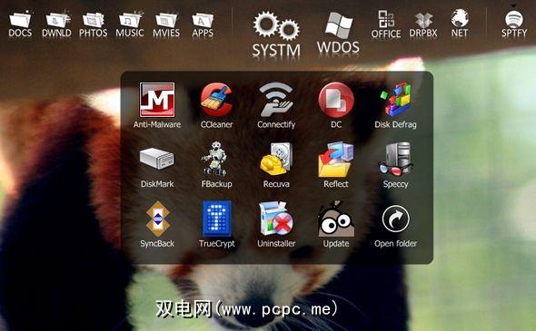 壁纸是我拍摄的一张红熊猫的照片,码头是以“简单黑暗"和清晰图标为主题的火箭坞;