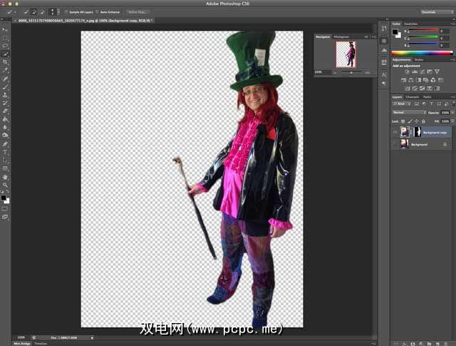 大致完成后,点击顶部工具栏上的 Refine Edge 按钮。滑动滑块,直到您对提取满意为止(它确实取决于源材料),然后选择输出到新图层。您应该最终得到这样的东西: