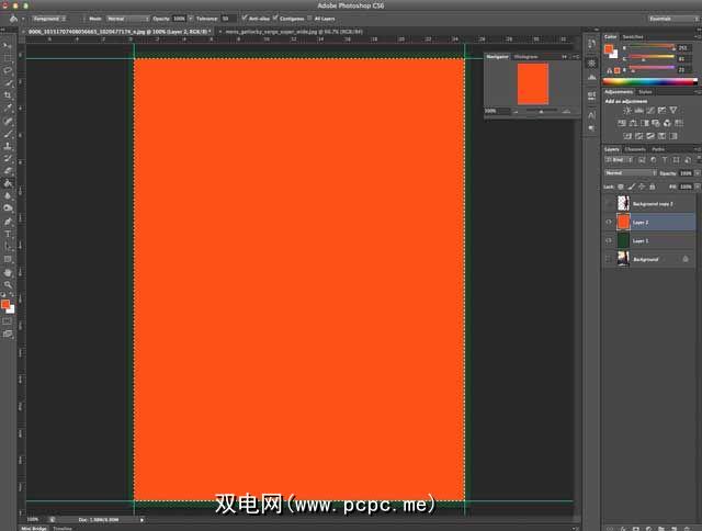 下一步创建另一层并选择一个比完整画布大小稍小的矩形–用温暖的迷幻橙色填充,这是70年代外观的关键(#FF5117很好)。