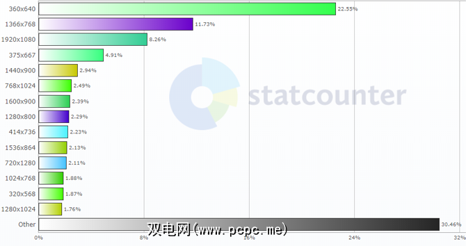 根据GlobalStats,这些是2018年最常用的屏幕分辨率: