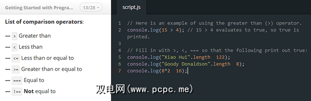 抽象主题的具体示例。编程知识是高度抽象的,这就是为什么它可以对某些人来说很难。出色的教程不仅可以解释概念,还可以提供多个示例来提供实际的例子。在线编码学校Codecademy是简单易用的出色范例入门编程课程。不仅每个课程都是增量设计的,而且对行话的依赖也不大,每堂课都包含一些对刚刚学到的概念的真实插图。