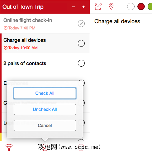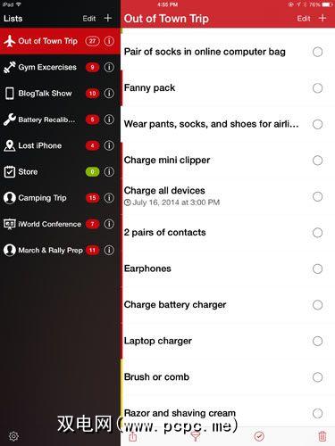 我使用iOS和Mac待办事项应用2Do创建和检查我的日常待办事项,但我也使用ListBook来处理大多数没有到期日的列表。例如,当我准备外出旅行时,我打开ListBook来提醒我我需要的物品和需要做的事情。该列表很少更改,我可以检查一下项目并再次使用。