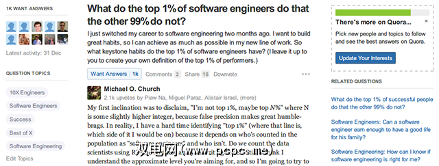 不要将其混为一谈其他众包回答网站,例如Yahoo!答案或WikiAnswers。 Quora具有许多功能,这些功能使其不仅仅是搜索引擎查询的一站式目标。这是一个值得参与的活生生的生态系统。