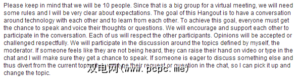 我的公开邀请包含一个简短的表格,供我选择参与者。鉴于通知时间较短且有特定的时区,答复并没有引起很大的反响,但是我仍然无法邀请所有回答此表单的人。我选出了9位看似热情的读者,其中大多数以前见过对PCPC.me进行评论。