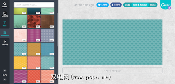 从那里开始,您会看到一块空白画布,可以在其上释放创意破坏力。一个好的开始是添加背景。免费提供数百种不同的背景,包括一些真正令人惊叹的带纹理的背景。如果您愿意花一些钱,可以得到一些基于照片的出色设计。但是,免费选项对大多数人来说应该足够了。