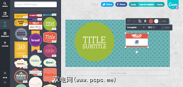 对背景进行排序后,就可以开始添加一些内容了。尽管您完全可以以自由格式将文本添加到设计中,但仍有一些预制的文本设计可供您使用。有些有些古怪,而有些则不会在闷热的公司手册中显得格格不入。