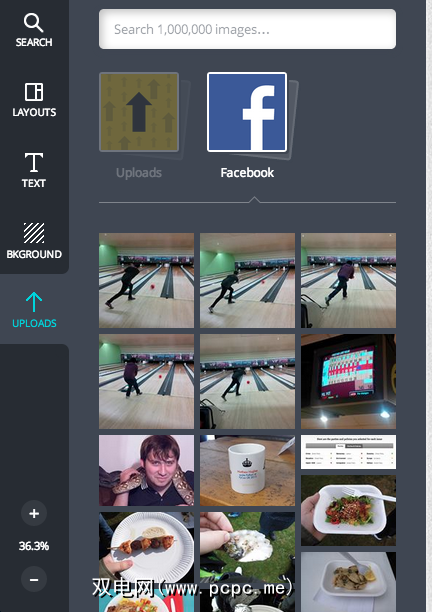 如果您想让设计更具个人风格,您会很高兴地知道Canva允许您直接从Facebook或硬盘导入照片。可悲的是,仅通过拉动您已发布为状态的照片而妨碍了Facebook集成。如果您希望使用度假时拍摄的那些照片并放入自己的Facebook相册中,那将很不走运。