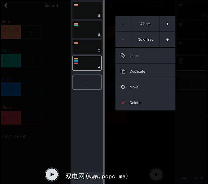 您可以在场景上点击以更改播放的小节数,以选择从哪个小节开始,或移动或重命名它。请注意 Loop 按钮,点击该按钮将循环播放当前场景。禁用循环功能以按顺序播放场景,例如歌曲。在进行实验并树立信心时,您会更好地将实验变成完成的曲目。