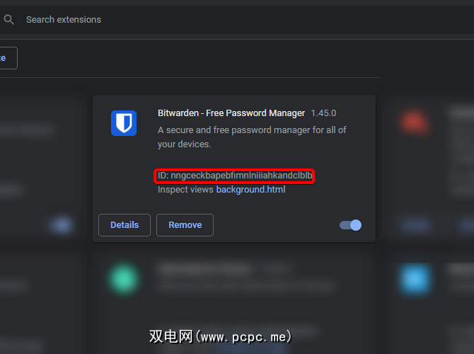 如果您怀疑您最近下载了受感染的扩展程序,因此可以进行检查。首先,通过在地址栏中输入 chrome:// extensions / 来打开扩展程序页面。找到您怀疑可能是恶意的扩展程序,并记下其下方列出的ID。