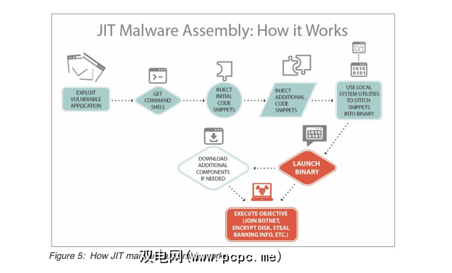发布恶意广告的较新方法是即时恶意软件组装。这包括广告中看起来很天真的代码组件,这些组件分别下载到受害者的计算机上。然后将它们组装并编译为恶意软件有效载荷。