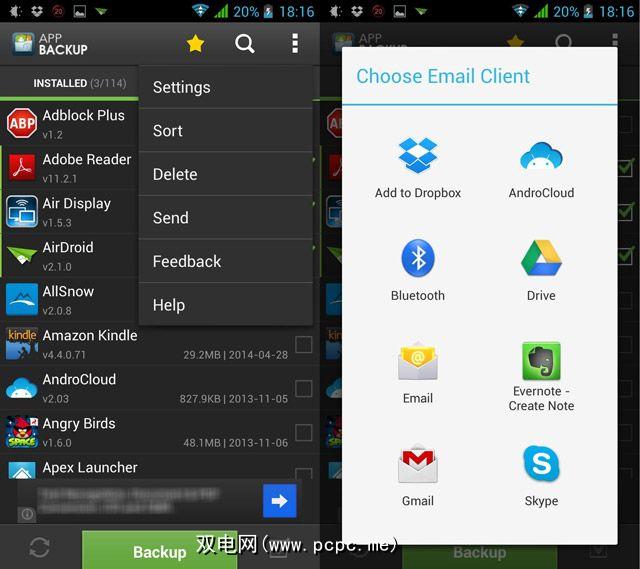 App Backup&Restore与AppWererabbit相比的一大优势是能够将文件批量发送到手机上的其他应用程序。备份某些应用程序后,您可以将它们全部一次上传到Dropbox或Google云端硬盘。如果您想将APK保留在云中,这是一个显着的优势。