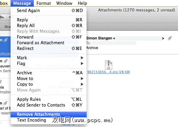 “邮件"应用程序的缺点之一是它存储附件本地存储在磁盘上,几乎没有透明度。为了避免阻塞磁盘,您可能会想删除带有大附件的电子邮件。但是,如果该电子邮件包含其他重要信息怎么办?邮件具有从附件中删除特定电子邮件的功能。重要的是要注意,(取决于您的导入和同步设置)可以从邮件服务器以及从计算机中删除!