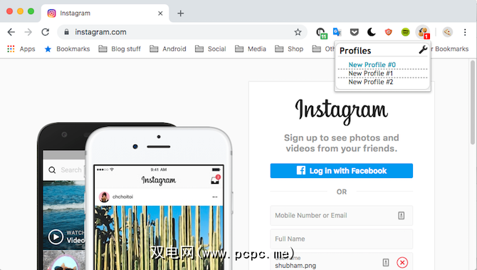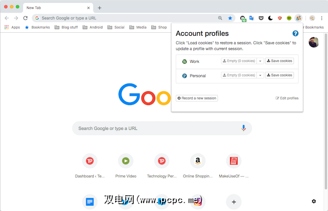 Cookie配置文件切换器围绕网站配置文件的概念发展,而不是产生新的标签或管理一组多个帐户。每当您打开网站时,都可以选择通过扩展程序菜单中的新配置文件来启动另一个会话。当然,只要您没有空间用完,就可以开发新的,单独标记并并行处理。