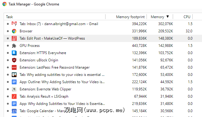 您是否想过Chrome扩展程序是否会降低您的浏览体验?您可以使用Chrome的任务管理器进行查找。