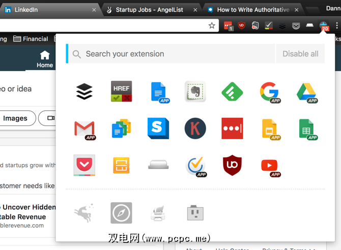 因为有些扩展得到了以他人的方式如果是这样,您将希望能够快速启用和禁用它们。这是一种很好的方法。您还可以使用全部禁用将其全部关闭,这是清理浏览体验的好方法。