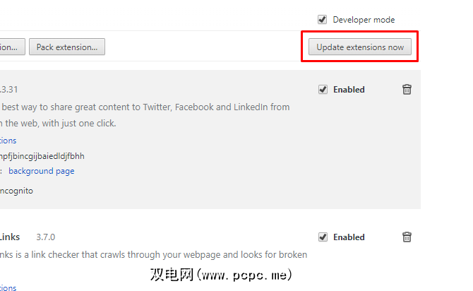您还可以从此屏幕更新扩展程序。在窗口顶部,您会看到立即更新扩展按钮。