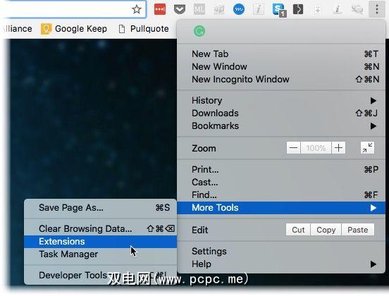 但是您所拥有的可能不止这些。单击Chrome 设置按钮,然后转到更多工具>扩展程序以查看完整列表。