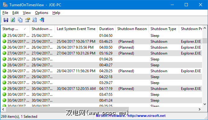 如果您想查看系统何时关闭的记录,则可以使用Windows事件查看器。但是,如何使用它尚不是很明显。对于将列出启动和关闭时间以及关闭原因和类型的简单工具,请查看TurnedOnTimesView。