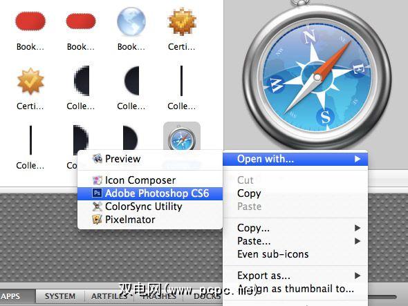 找到所需的图标或图像后,您可以将其换成另一个文件,也可以手动编辑原始文件。交换两个文件就像将替换文件拖到文件检查器中一样容易。右键单击此检查器,您将获得其他几个选项,其中最重要的是可以在另一个应用程序中编辑原始文件。