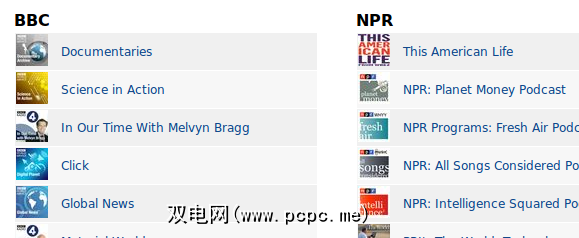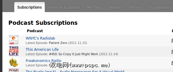在这里您可以找到各种各样的播客,其中特别关注技术播客以及NPR和BBC的播客。单击即可浏览并将其添加到gPodder。此Web界面是一种在工作中或不在计算机中时,随时向您的家庭收藏中添加播客和添加播客的好方法。