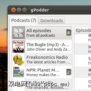 启动gPodder,您将看到一个用于下载和收听Podcast的简单界面: