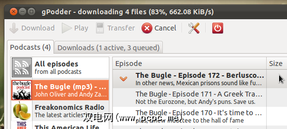 在设置中进行挖掘,您会发现控件可以控制音乐播放器(包括Banshee和Rhythmbox)何时不提供来播客。您可以将程序设置为自动下载新剧集,但跳过某些播客。您也可以自动删除几天前收听或观看的文件。您可以使用OPML文件导入和导出播客列表,如果您要共享列表或要切换计算机,这将非常有用。