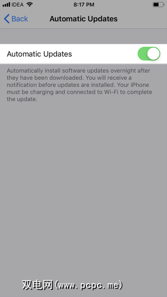 要在iOS 12中启用自动更新功能: