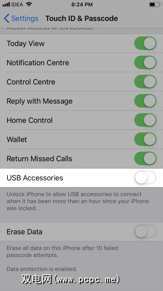 通过USB进行连接是一个潜在的安全问题,因此此功能可防止黑客通过配件将其绕过锁定屏幕连接到Apple设备。