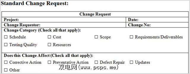 一对模板可以很好地配合使用包括项目范围报告和项目变更授权。不仅外观匹配,而且经常会更改项目范围,并且需要进行授权。每个表单都有一个方便的下拉菜单,用于添加日期,签名和授权表,字段提示以及易于单击的部分。