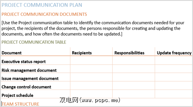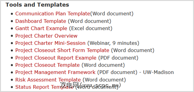 项目管理文档是模板和文档的另一绝妙资源。他们的模板带有针对该领域的新手的有用信息。