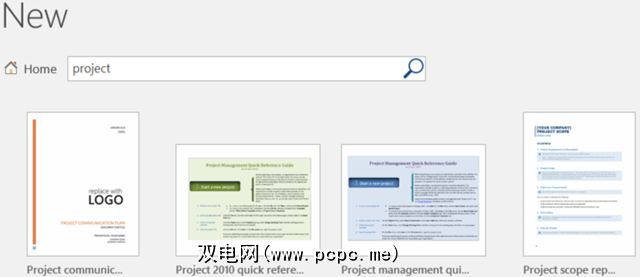 如果您使用的是Word 2016,已经可以使用许多有用且格式正确的模板进行项目管理。只需转到文件,然后选择新建以打开模板部分。如果您输入 Project (项目)一词,您将获得最多的结果。虽然这可能会为您提供所需的更多功能,但是如果使用短语 Project Management 缩小范围,则某些模板将不会显示。