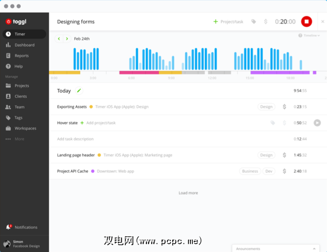Toggl有不同的计划。基本计划是免费的,可以为您提供有关管理工作和空闲时间的大量见解。 Chrome扩展程序可帮助您跟踪任何网络应用上的时间。它甚至还有一个Pomodoro计时器,告诉您休息一下。